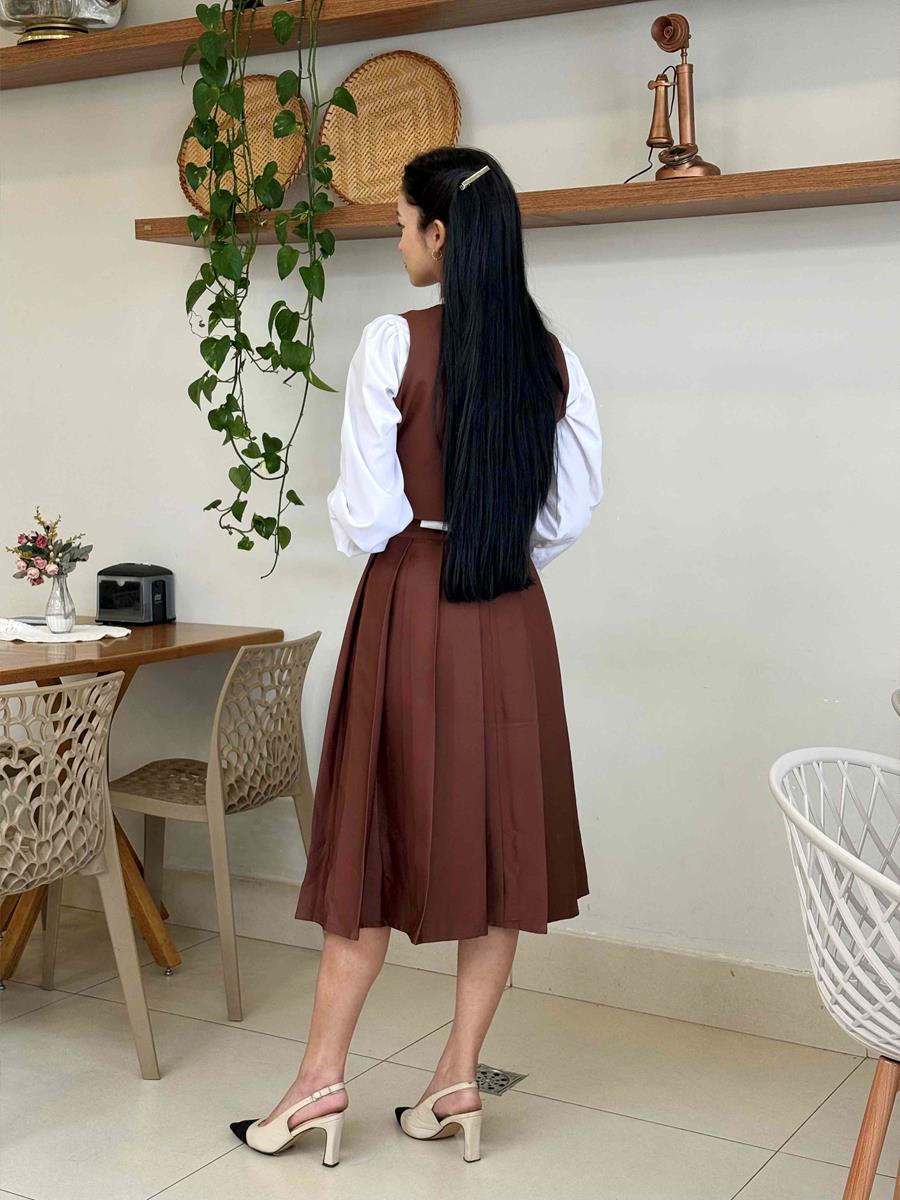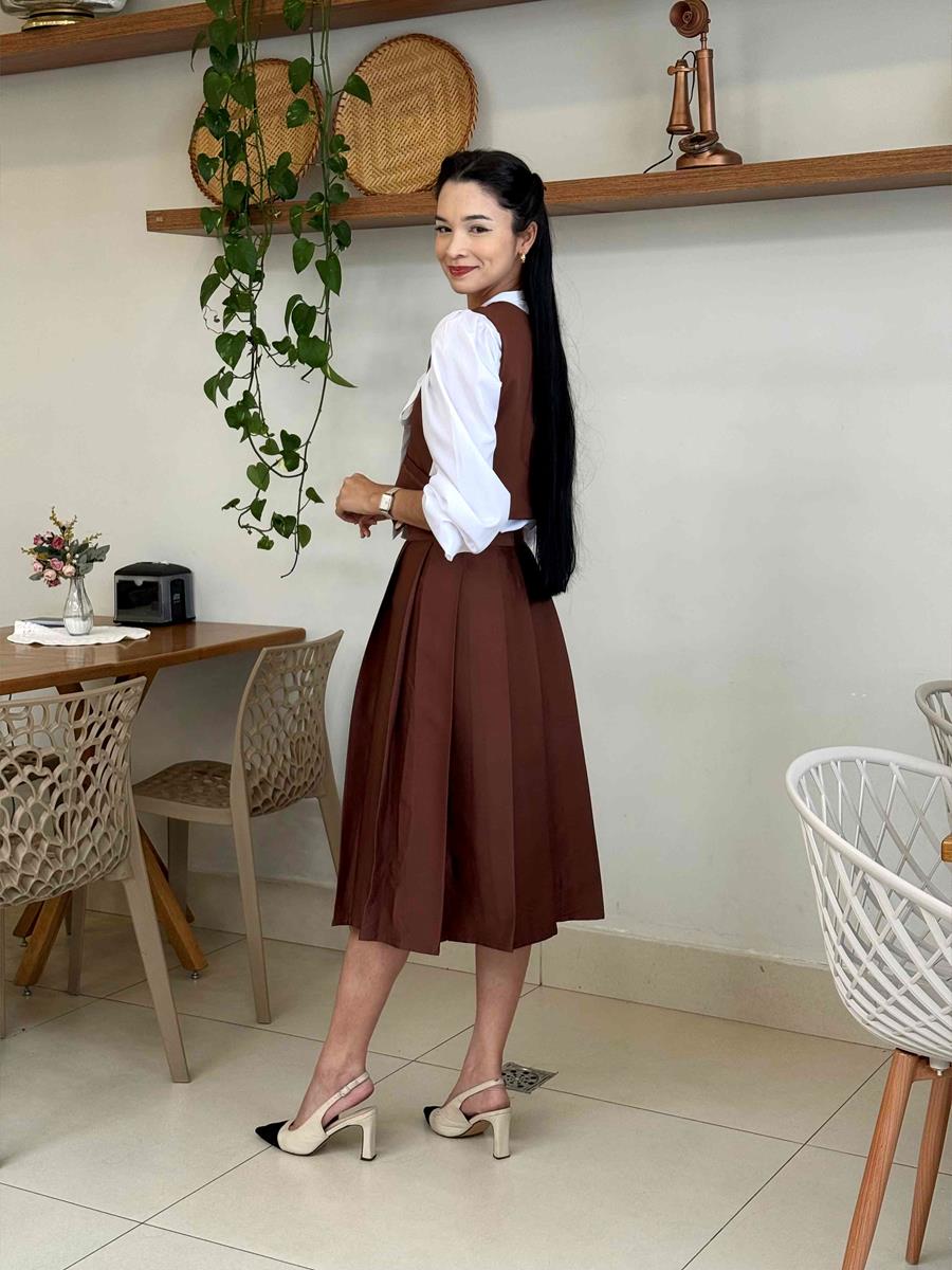 Look completo inspirado nas protagonistas de dorama. Composto de uma saia com pregas , coletinho, e blusa prepose com laço. Look indispensável em um guarda roupa de uma dorameira nata. Trazendo elegância, personalidade ao seu look para o dia-a-dia