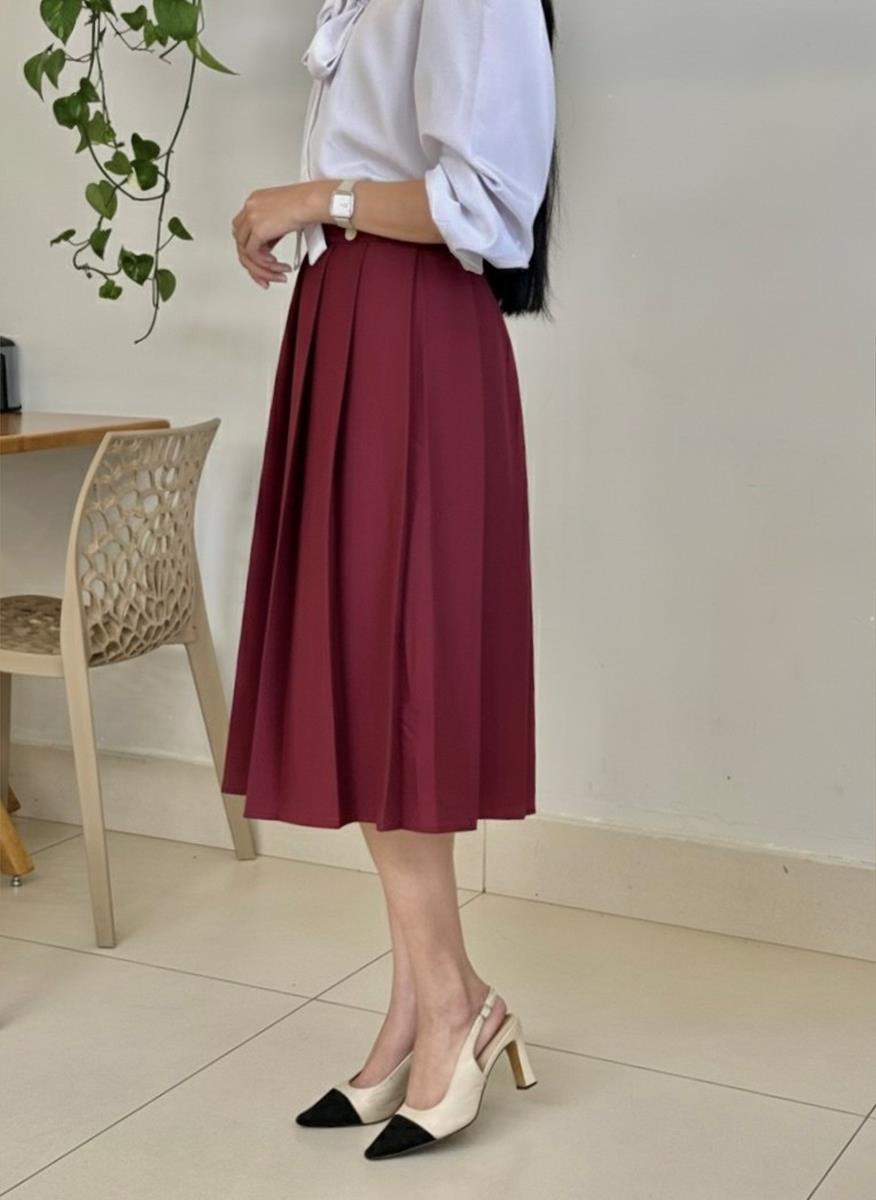 A saia com pregas é de alta costura, com o acabamento impecável e modelagem reta acompanhada de pregas por toda saia, assim dando um toque delicado ao seu look. A Saia de alfaiataria pode ser montada em diferenciados looks e estilos.