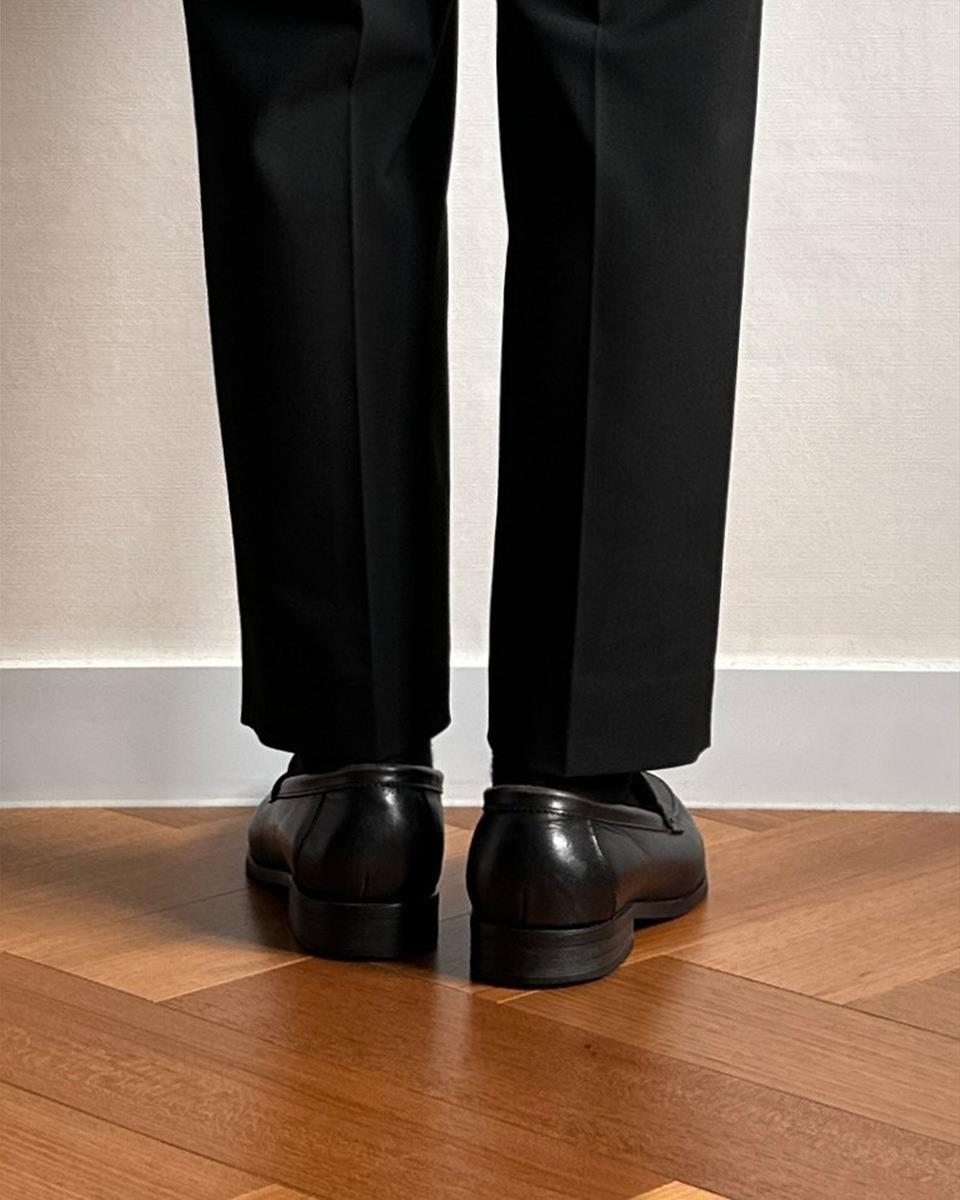 Calça alfaiataria com cortes retos e finos da alfaiataria alta costura. com fogos estilo faca e caimento impecável na silhueta masculina